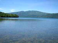 周囲57km、面積79.3平方キロメートル、最大深度117.5mの日本で6番目(カルデラ湖で1番)の大きさを誇るカルデラ湖です。また、冬期間は全面凍結しますが、毎年400~500羽の白鳥が訪れ人々の目を楽しませます。 |